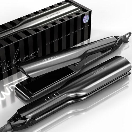 Laurenza Professional Hair Straightener Flat Iron with Anion, 2.16” Extra-Large 3D Floating Ceramic Flat Iron, No Hair Damage, 15s Instant Heating Straightening Iron(Galaxy Black)